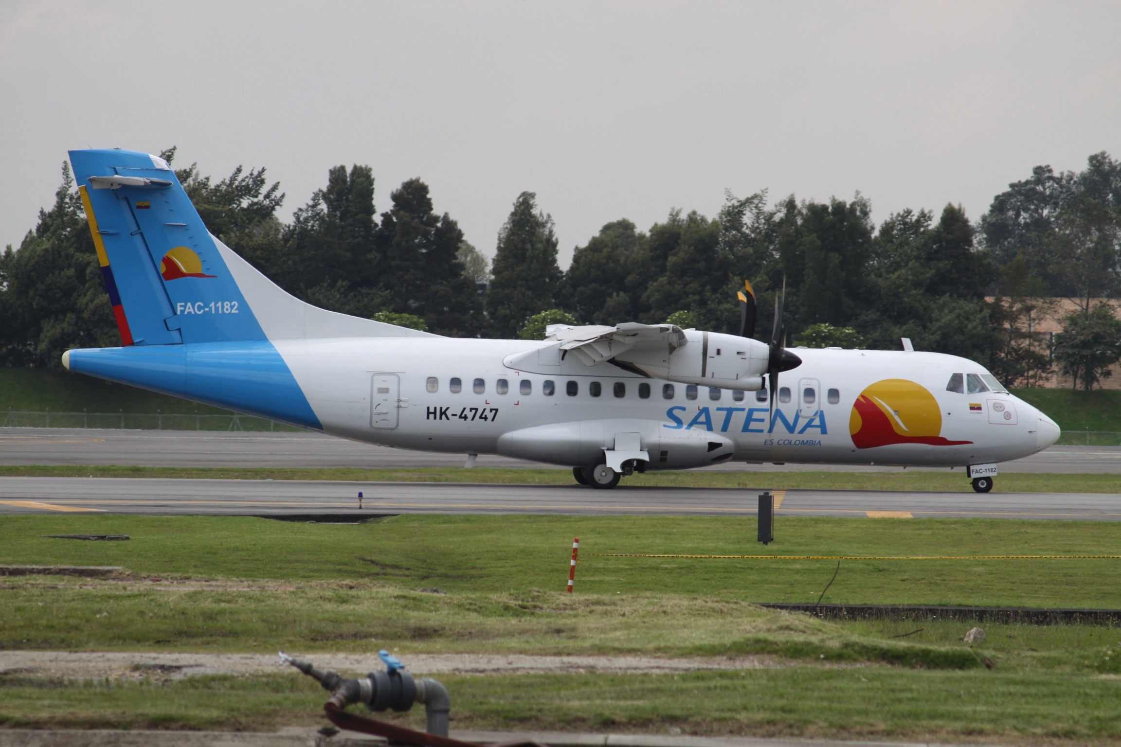 Featured image description: A Satena airplane.